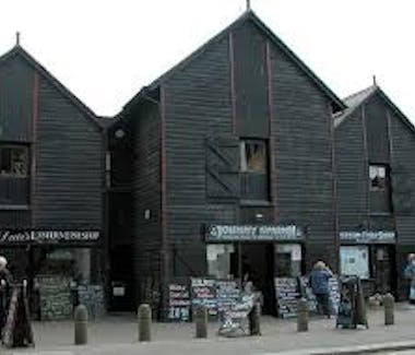 Rock-a-Nore contains the Blue Reef Aquarium, the Fishermen's Museum, and the East Hill Cliff Railway, and borders The Stade, with its tall black wooden "net shop" sheds, which were built to provide a weather proof store for the fishing gear. The sheds are tarred black and weatherboarded.