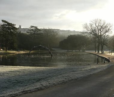 The park lies within a valley and as such is long and linear. It starts flat and progressively goes up hill towards the north of the town.