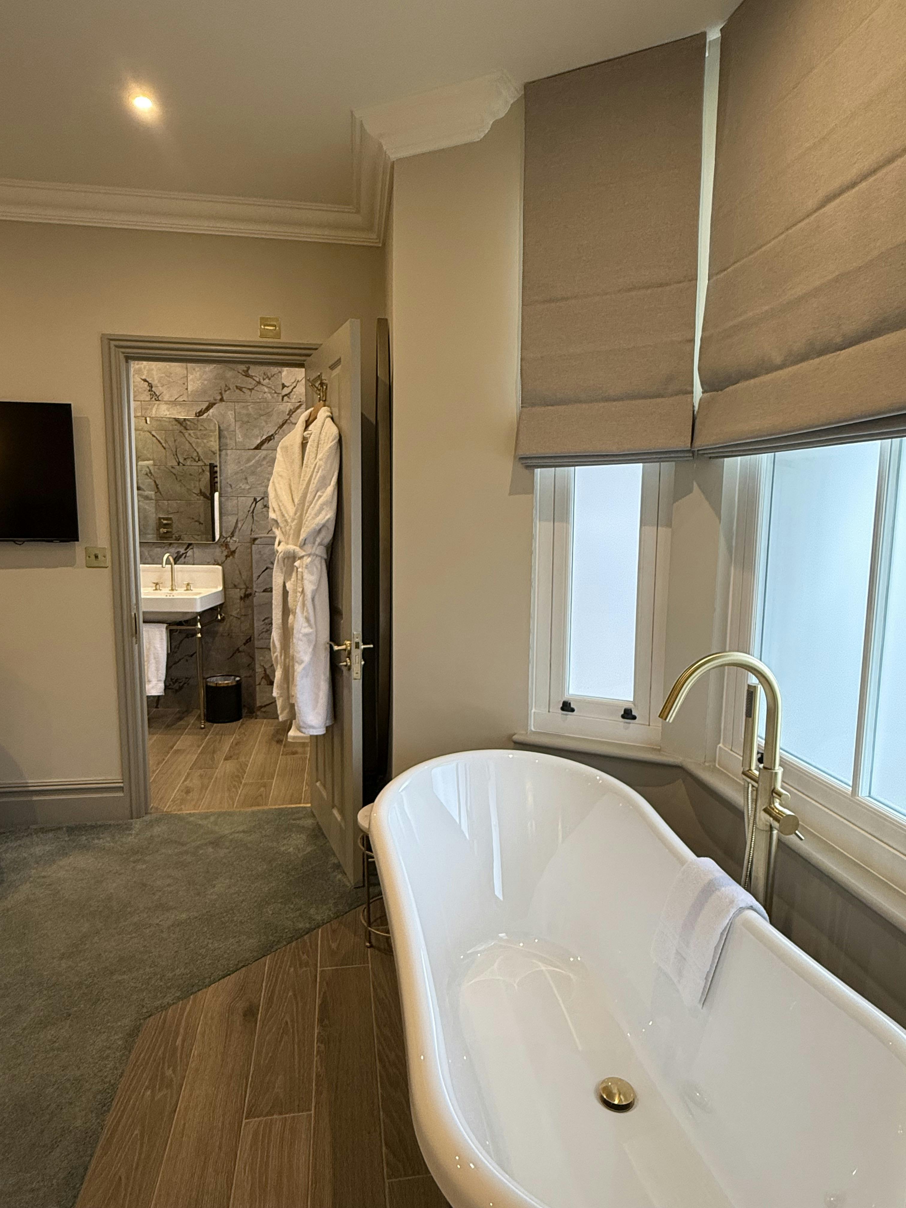 The room is also equipped with tea making facilities and 'Nespresso' coffee machine. Smart TV. Complimentary toiletries, and luxury quality towels, together with a Hairdryer, Mini fridge, Iron and Ironing board.